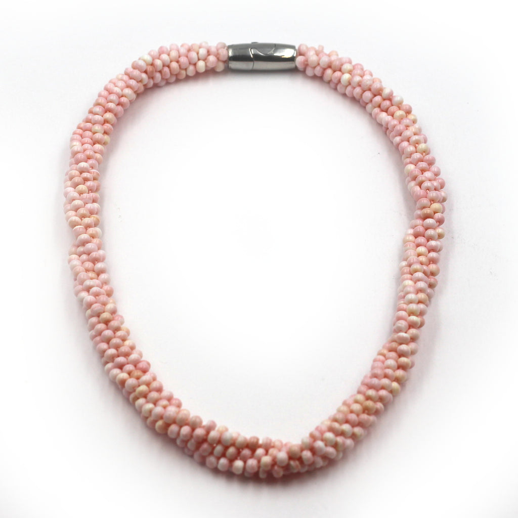 Elevate your collection with this conch shell necklace, where traditional kumihimo braiding meets contemporary design. The Japanese braiding technique creates a supple, durable cord with distinctive textural appeal, while the magnetic clasp delivers seamless fastening without compromising security.  The combination of time-honored craftsmanship and functional innovation produces a versatile accessory that complements both minimalist and layered styling approaches. The diameter is 10mm and can be worn with many of the pendants Charveaux has to offer.  It measures 19 inches long.