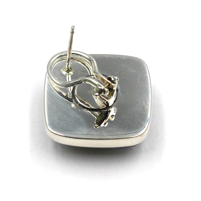 Elevate your collection with these AAA-quality gaspeite earrings, showcasing the distinctive turquoise-green hues this rare gemstone is prized for. Each piece features secure omega backs, ensuring comfortable all-day wear for pierced ears. Surrounded by top quality lapis, the superior grade guarantees vibrant color and exceptional clarity, making these earrings a sophisticated addition to any jewelry wardrobe. Perfect for those who appreciate fine gemstone craftsmanship and distinctive natural beauty.  The earrings measure approximately 20mm x 20mm.